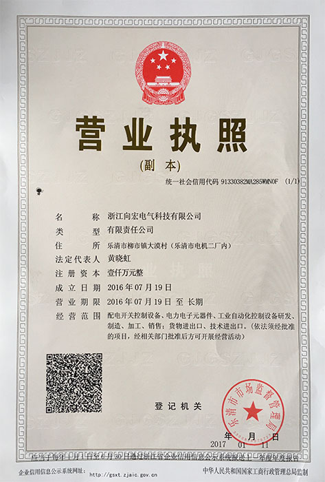 浙江向宏電氣科技有限公司創(chuàng)建于1993年,公司位于浙江省樂清市柳市鎮(zhèn)象陽工業(yè)區(qū),是輔助開關(guān)、真空輔助開關(guān)、輔助觸頭、微動開關(guān)、磁吹開關(guān)、速動開關(guān)、行程開關(guān)、控制開關(guān)、轉(zhuǎn)換開關(guān)等100多個系列產(chǎn)品的專業(yè)制造商。